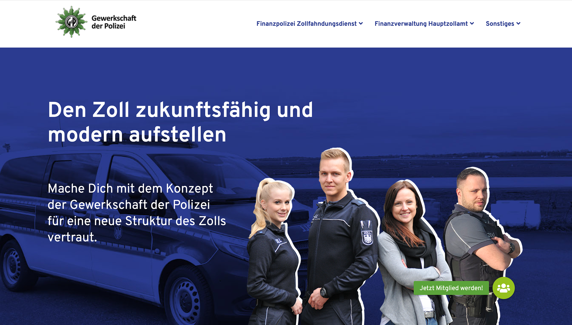 The Gerwerkschaft der Polizei (GDP, engl.: Police Union) approached us to visualize a new concept for the Zoll (engl.: Customs) in Germany. The Zoll system's fragmented organizational structure required a solution that would make this intricate framework understandable, while also being appealing and functional for over 200,000 potential users. Our task was to design a browser-based application that combined interactivity, clarity, and simplicity.